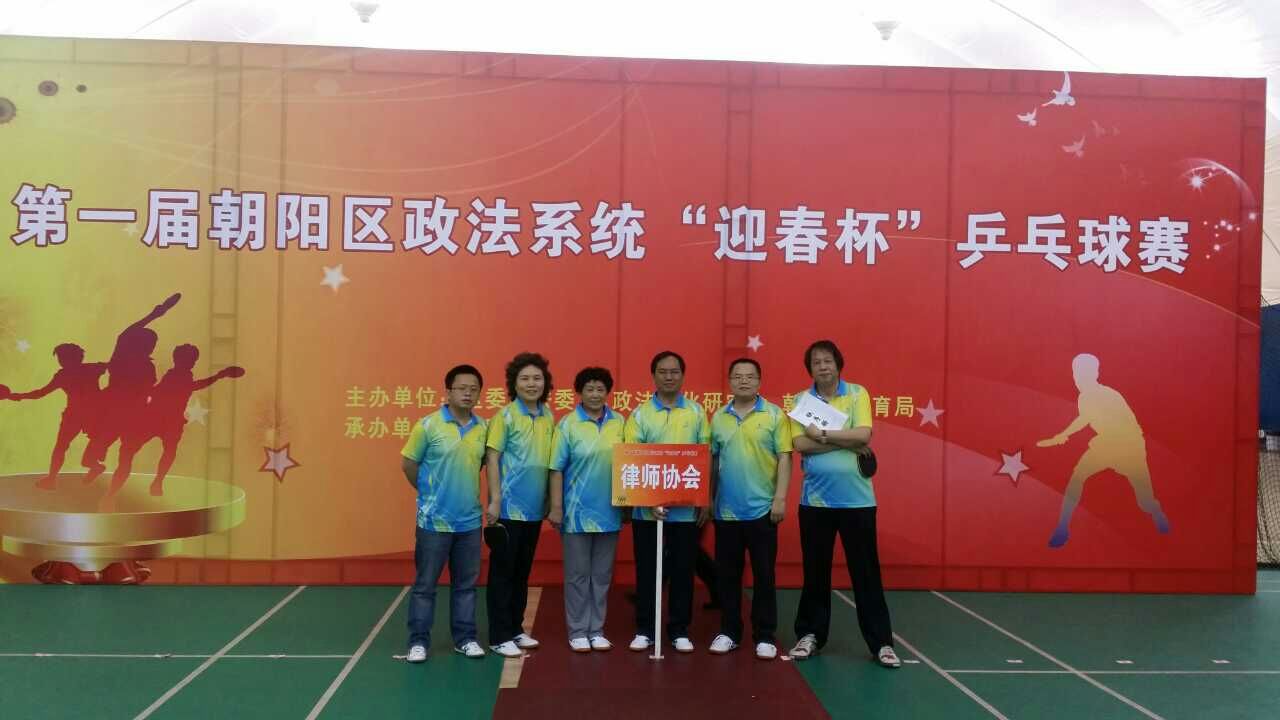 2015年2月7日,在北京市朝阳体育中心举办了第一届朝阳区政法系统 “迎春杯”乒乓球赛。本次比赛由区委政法委、区政法文化研究会及朝阳区体育局主办,朝阳区社会体育管理中心承办,来自政法委、公安分局、检察院、法院、司法局、民政局、残联、安全分局、交通支队、消防支队、武警支队及律师协会的六十余名选手参加了比赛。
